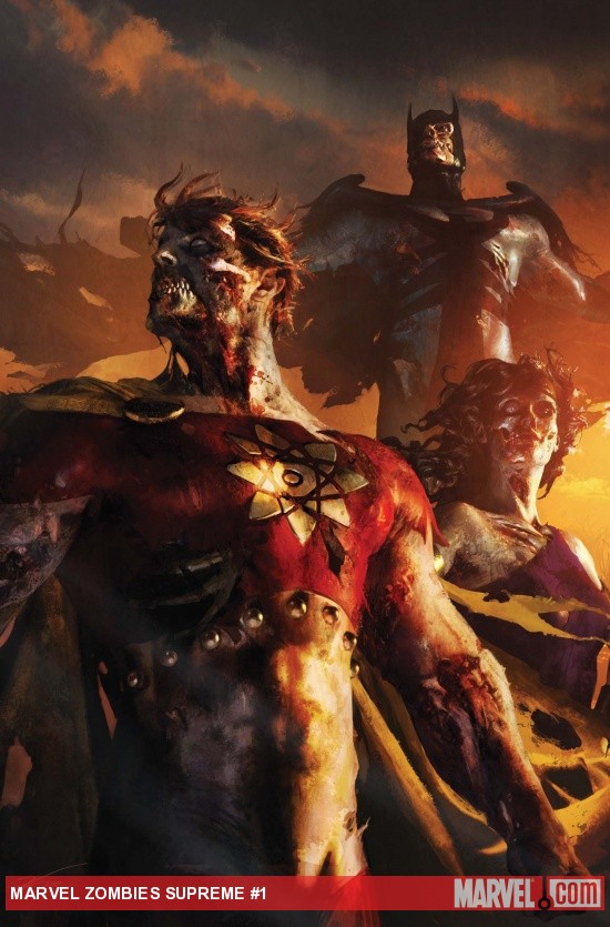 ¡UN HAMBRE SUPREMA! Eran el Escuadrón Supremo, héroes exiliados de otra dimensión al nuestro... pero la ciencia torcida de la instalación del proyecto Pegasus facilmente infectó a estos defensores con una cepa virulenta zombie. Ahora hasta Jill Harper está desesperada por el equipo de operaciones especiales para mantener la plaga contenída dentro del centro a toda costa. Pero Harper descubre que el escuadrón no era solamente el experimento inconcebible para ser mantenido fuera de los registros de Pegaso... y su impactante hallazgo puede ser la clave para salvar a la raza humana. ¡Únete a Frank Marrafino (Haunted Tank) y Fernando Blanco (MARVEL ZOMBIES 5, THUNDERBOLTS) en el climax impredecible de resurrecciones en el capítulo de la saga aún más gore de Marvel Zombies!